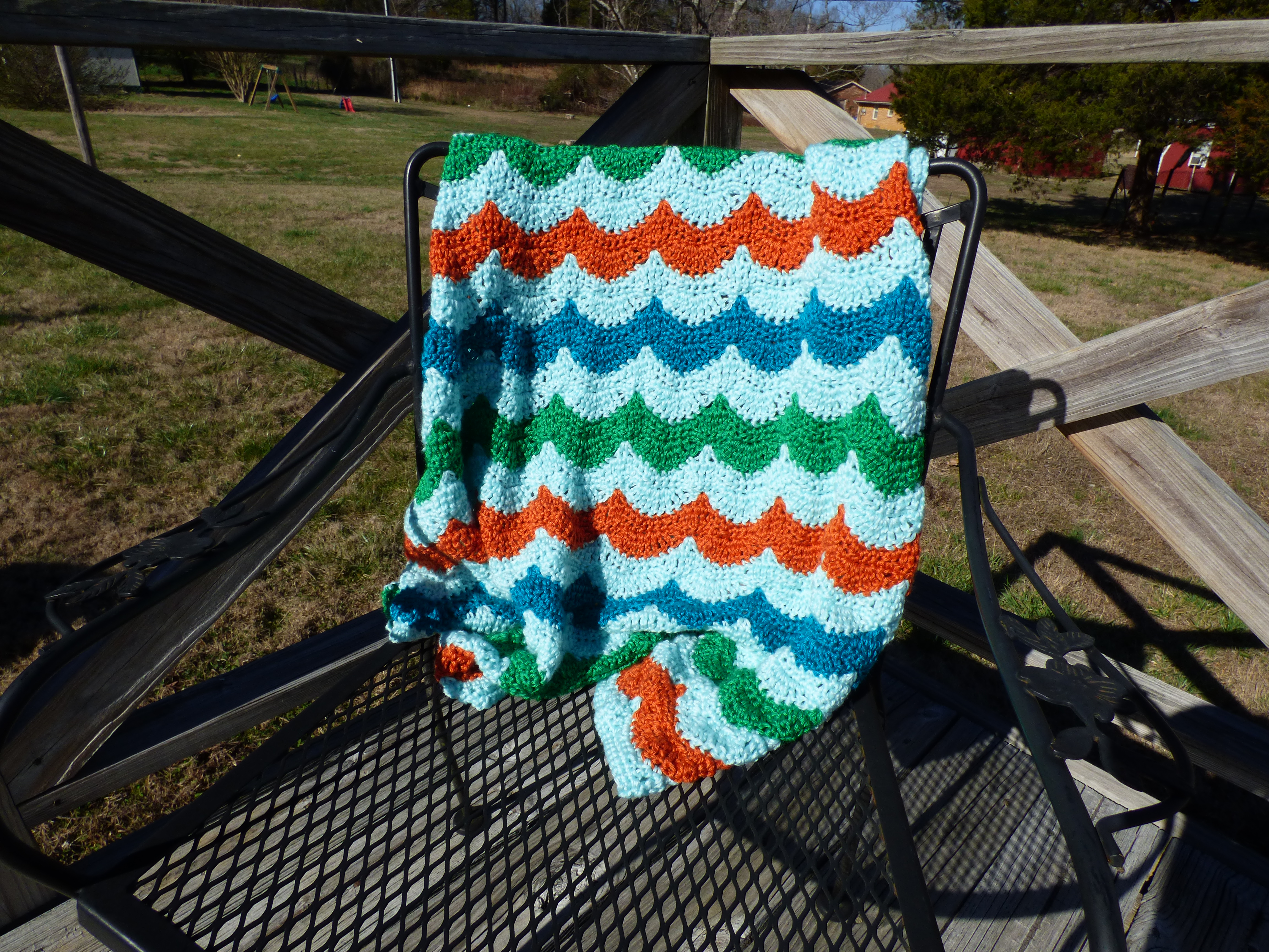 When she told me she was pregnant, I was thrilled for her. Her due date ended up being the same as Jellybean’s – how fun! So I decided to make a bright blanket for her new little guy.